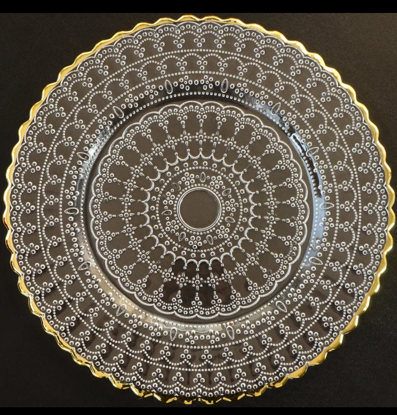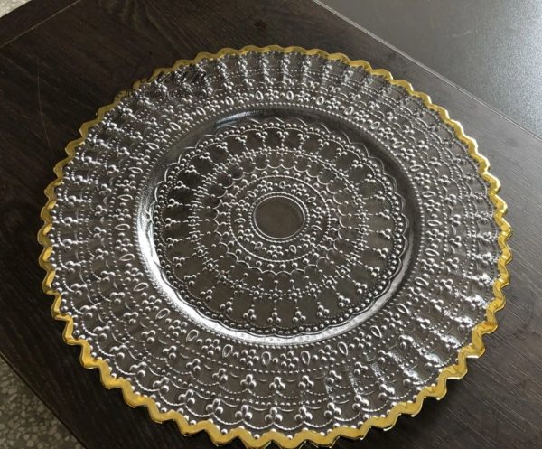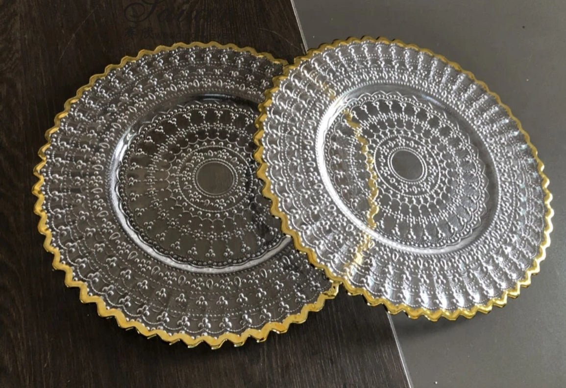 Gold rim crystal clear charger plates