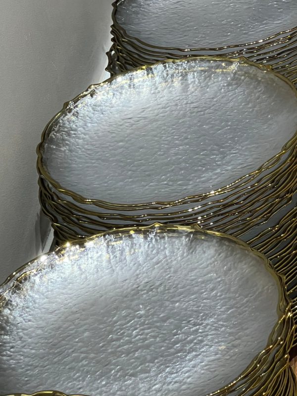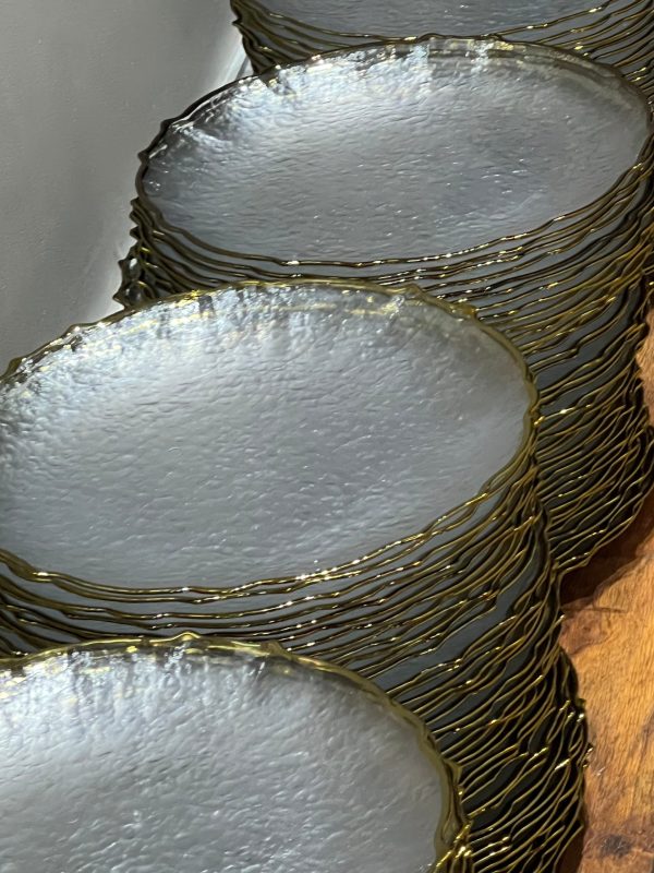 Gold scallop rim glass charger plates