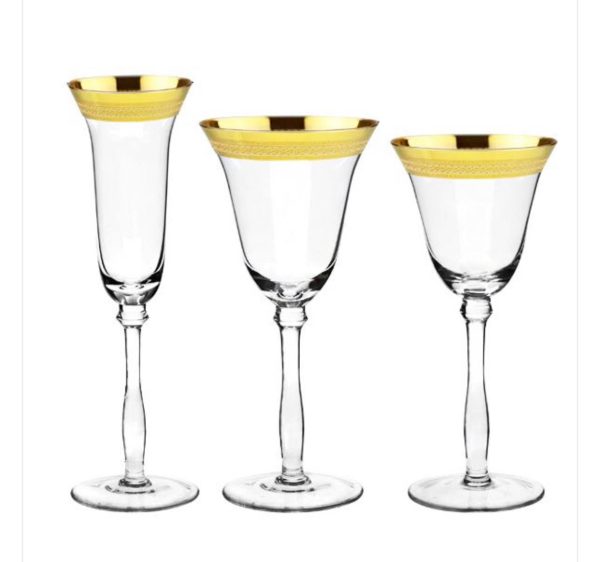 Gold Vintage rimmed wine & champagne flutes