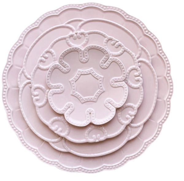 12 ‘inches charger, 10’5 inches dinner , 8 inches side & 6 inches bread plate