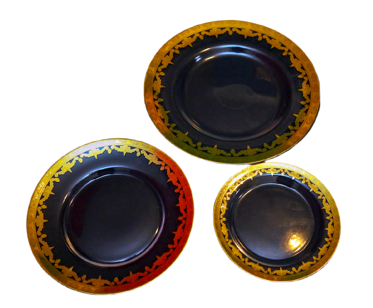 Large Gold rim glass plate collection
