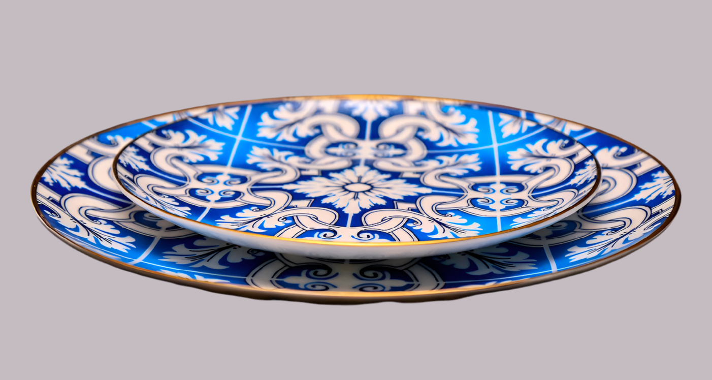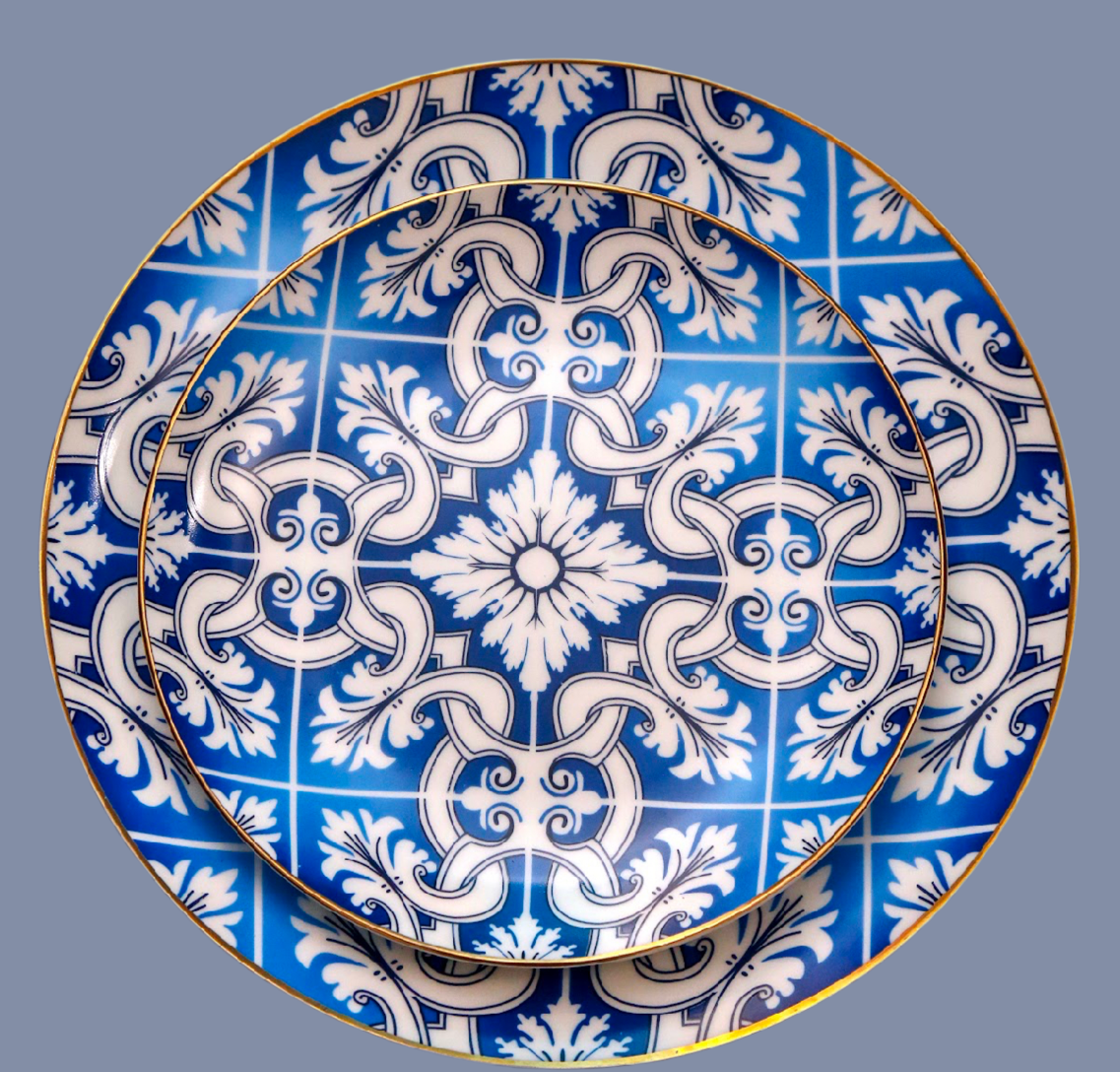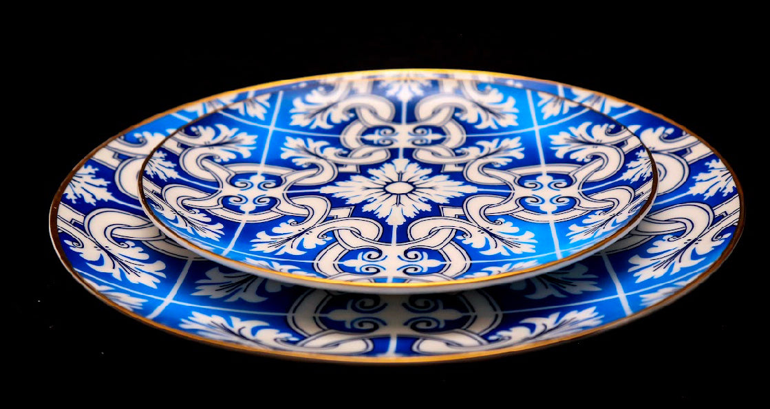 Blue pattern dinner & side plates